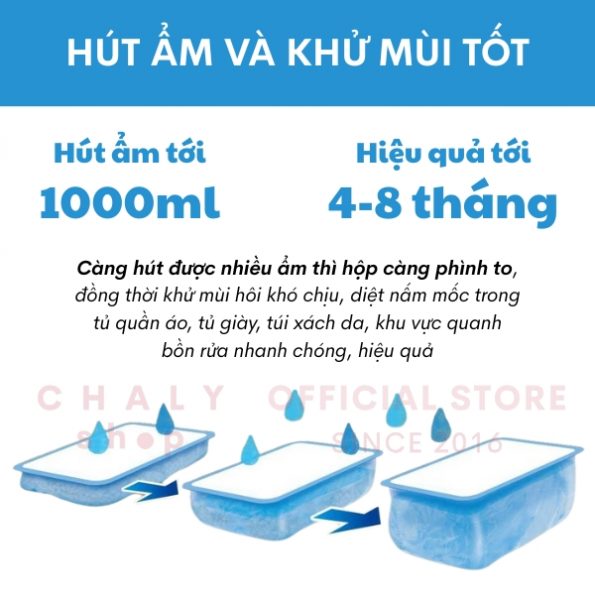 – Có khả năng hút ẩm lên tới 1000ml nước
