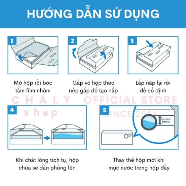 Hà Nội mưa bão xong nhà mình ẩm kinh khủng, hộp hút ẩm này là cứu cánh cho cuộc đời tui luôn. Cách gấp hộp dễ – tiện nghi. Trước khi dùng trong túi sẽ có mấy viên trắng, sau khi hút ẩm thì trong túi chỉ toàn là chất lỏng. Đổ nước đi là xong. Rất dễ sử dụng
