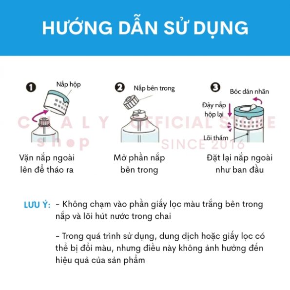 – Không chạm vào phần giấy lọc màu trắng bên trong nắp và lõi hút nước trong chai