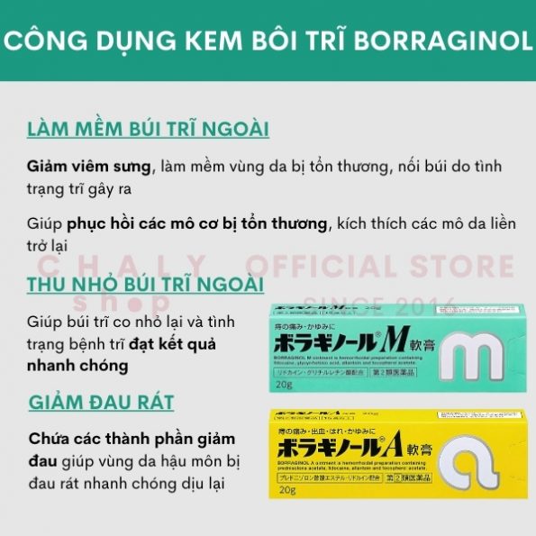 – Lưu ý: Sản phẩm thuốc bôi trĩ chữ A của Nhật có tên chính thức là Boragnol A, tuy nhiên còn có tên là Borraginol A theo cách phát âm của Nhật. Do đó các bạn lưu ý Boragnol A và Borraginol A là cùng một sản phẩm