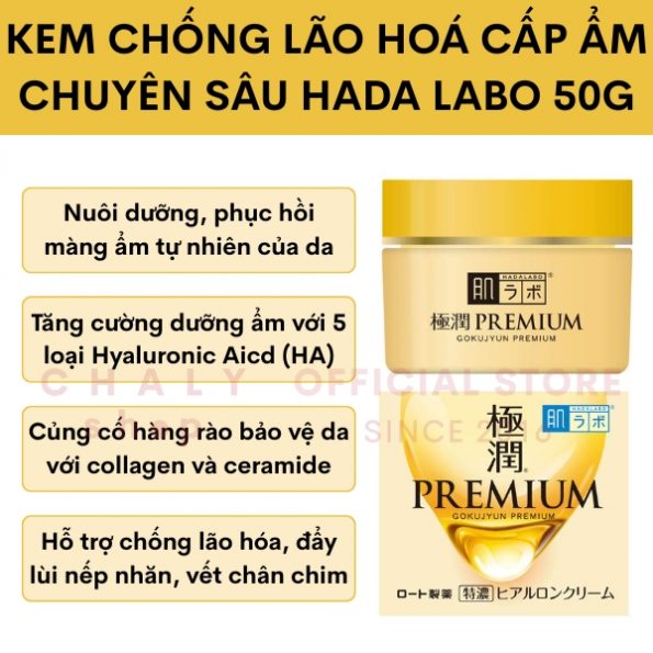 - 4 Kem dưỡng ẩm Hada Labo Gokujyun Premium Super Hyaluronic Cream vàng 50g mẫu mới chính hãng Nhật