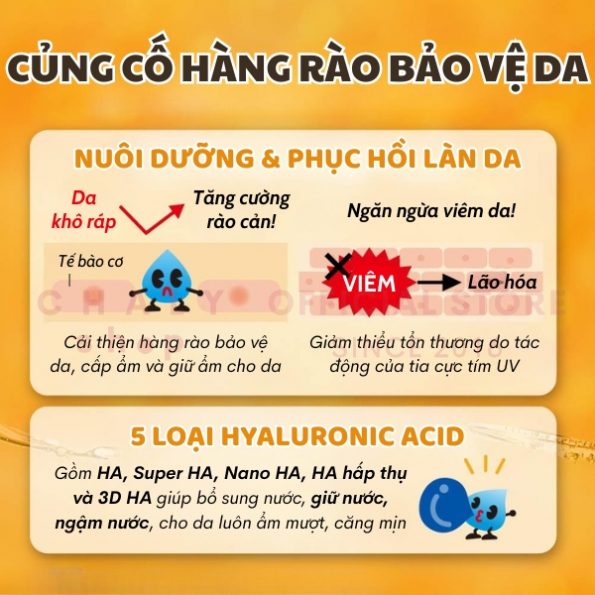 – Chứa tới 5 loại HA và 1 loại HA dạng oil capsule độc đáo, đẩy bật khả năng cấp ẩm và khoá ẩm, đem lại hiệu quả hơn bất kỳ loại kem khoá ẩm nào khác bạn từng gặp