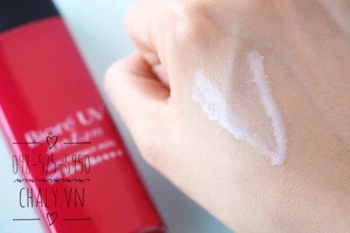 – Khi thoa chai kem chống nắng Biore uv đỏ dạng sữa bạn sẽ gần như không cảm giác đã thoa gì trên da