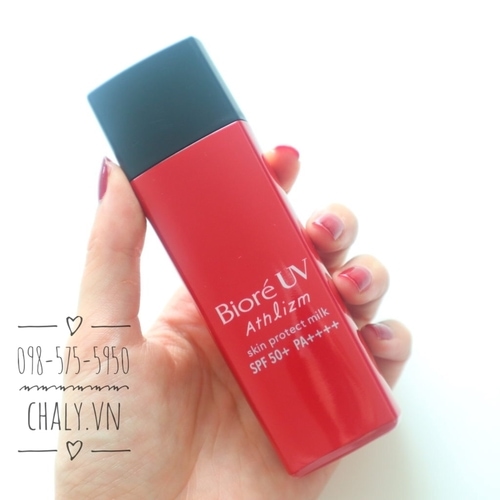 – Sữa/kem chống nắng Biore UV Athlizm Skin Protect màu đỏ tại Chaly là mẫu mới nhất hiện hành, date xa để giúp khách hàng yên tâm tối đa khi dùng