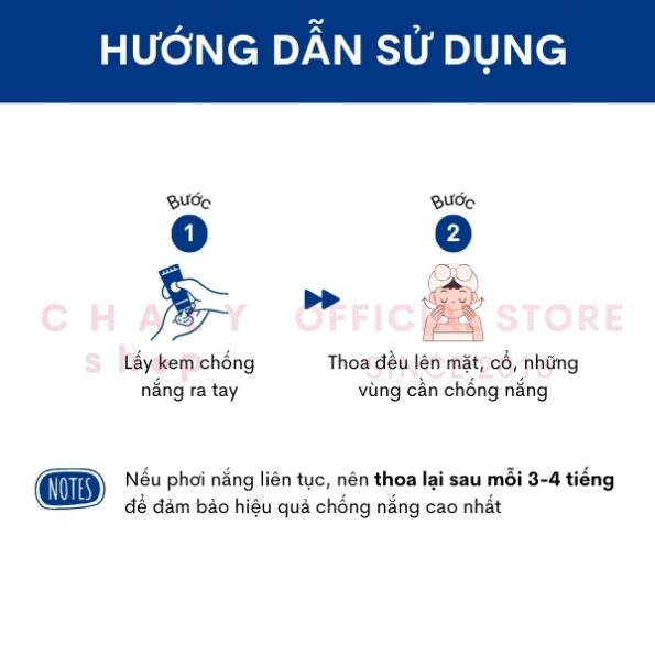 – Nên thoa lại sau mỗi 3-4 tiếng nếu phơi nắng liên tục để đảm bảo hiệu quả chống nắng cao nhất