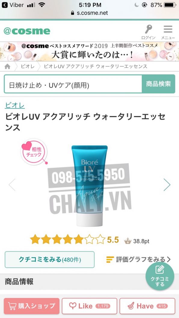 – Review siêu cao trên Cosme Ranking. Mới trình làng đã leo thẳng lên vị trí số 2 trong danh sách kem chống nắng được ưa chuộng nhất của Nhật hè 2018-2020