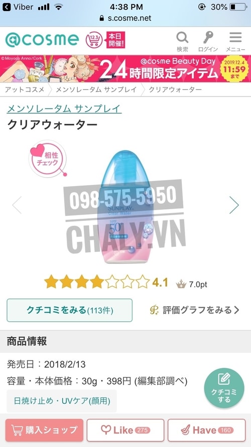 – Giá bình dân sinh viên cũng là một ưu điểm không thể chối cãi của kem chống nắng Sun Play clear water Nhật
