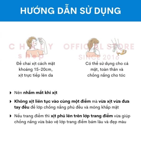 – Có thể sử dụng cho cả mặt, toàn thân và đặc biệt là cả chống nắng cho tóc nữa nhé