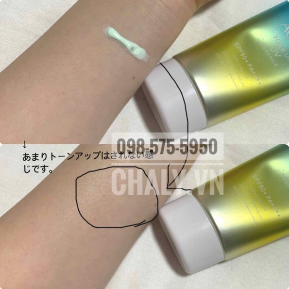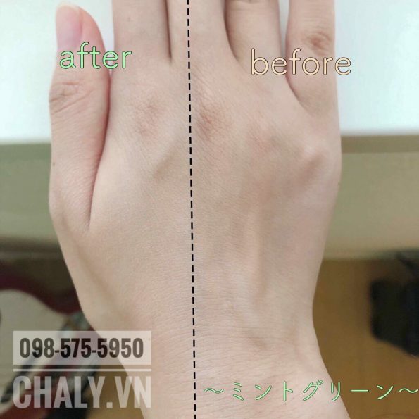 Trước và sau khi thoa kem chống nắng biore tone up uv essence mint màu xanh