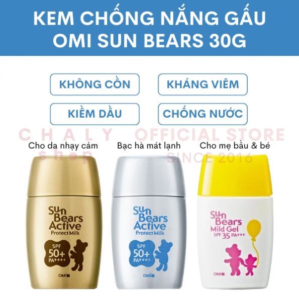 Kem chống nắng Sun Bears Omi của Nhật Bản là dòng kem chống nắng hiếm hoi của Nhật có công thức hoàn toàn không cồn (alcohol free), được chị em da nhạy cảm, dị ứng với cồn vô cùng yêu thích