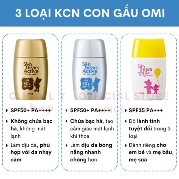 Kem chống nắng Omi Sun Bear có mấy loại?