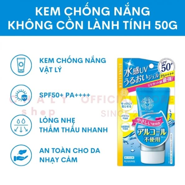 – Điểm đặc biệt của chống nắng Sunkiller sunscreen là thành phần lành tính tuyệt đối, không cồn, không paraben, không thành phần gốc dầu khoáng. Bởi vậy sản phẩm kem chống nắng Kiss Me Isehan này phù hợp với