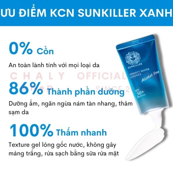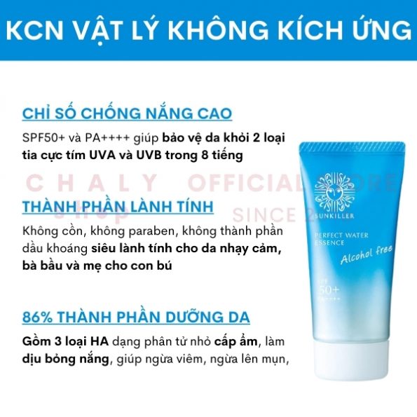 Kem chống nắng không cồn Sunkiller perfect water essence spf50+ pa++++ là sản phẩm siêu lành tính, an toàn cho làn da mẫn cảm nhất