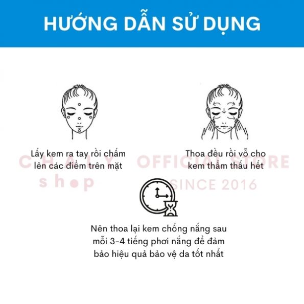 – Tuỳ theo nhu cầu của mỗi da thì có thể lót thêm kem dưỡng da xuống bên dưới trước khi thoa chống nắng để giữ ẩm tốt hơn