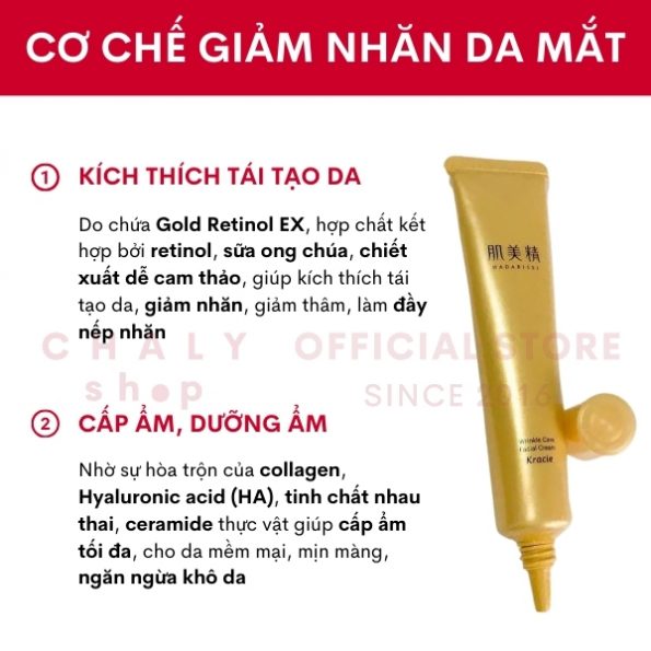 – Kem mắt Nhật Bản Kracie Hadabisei wrinkle facial cream tại Chaly là kem mắt nội địa Nhật chính hãng