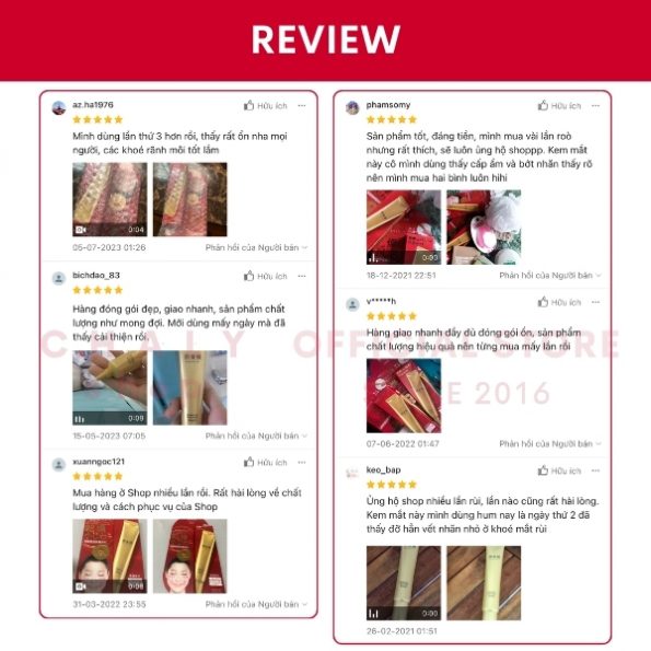 “Kết cấu kem lỏng vừa phải, thấm nhanh. Sử dụng thấy rõ phần da khô quanh mắt ẩm hơn, quầng thâm cũng giảm khá tốt”