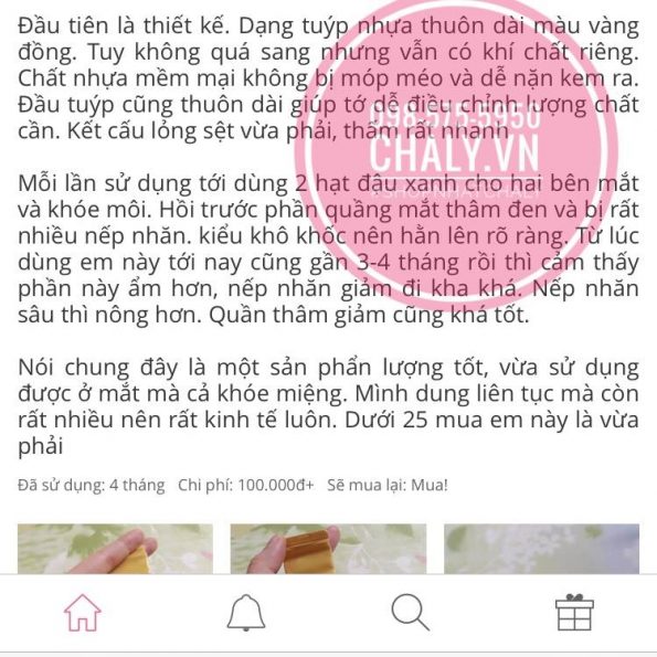 Trông em nó nhỏ thể thôi nhưng mình dùng phải 3 – 4 tháng mới hết. Vì diện tích bôi nhỏ mà…“