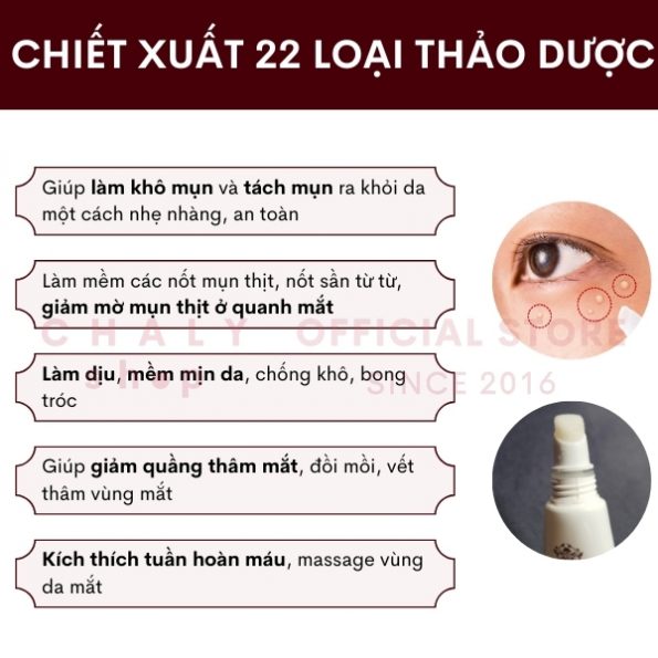– Mục đích sử dụng: Đặc trị mụn thịt quanh mắt