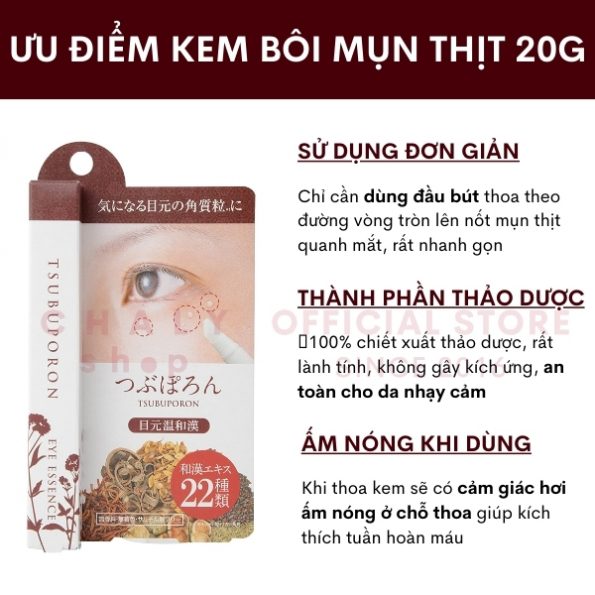 Ưu điểm của kem đặc trị mụn thịt vùng mắt Tsubuporon Nhật Bản