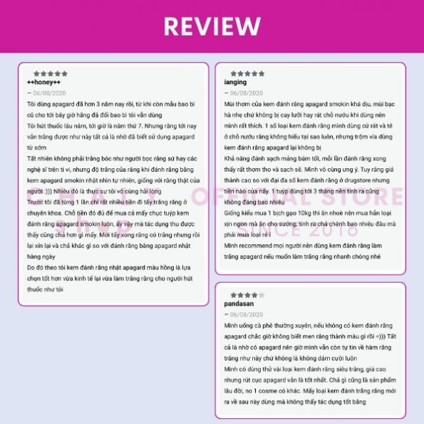 - 7 Review kem đánh răng Apagard Smokin màu hồng