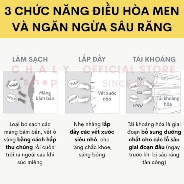 – Ngoài ra còn hỗ trợ diệt khuẩn, khử mùi và phục hồi, giúp bảo vệ men răng