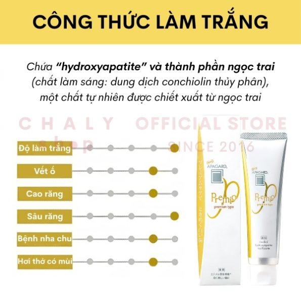 Thành phần kem đánh trắng răng Apagard Premio 105g Nhật