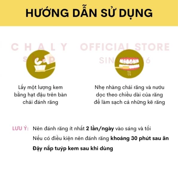 – Mục đích sử dụng: Làm sạch mảng bám, làm trắng răng. Chăm sóc răng ố vàng