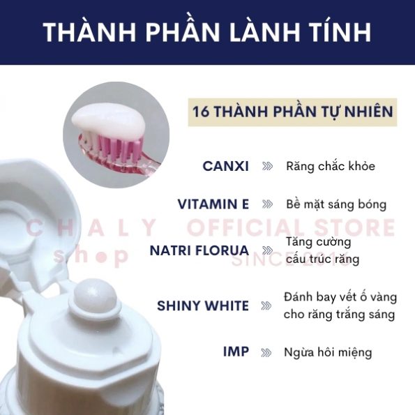 + Các hạt canxi siêu nhỏ giúp răng chắc khỏe, đánh bật mảng bám trên răng lưỡi