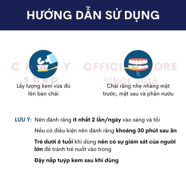 – Cho lượng vừa đủ lên bàn chải, chải nhẹ nhàng răng mặt trước, mặt sau và phần nướu