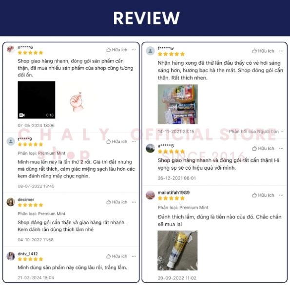 “Mới dùng có 2 tuần mà răng đã trắng lên hẳn luôn!!! Mỗi tuýp có 100g nên dùng nhanh hết quá. Giá mà hãng cho ra loại tuýp to hơn thì tuyệt”