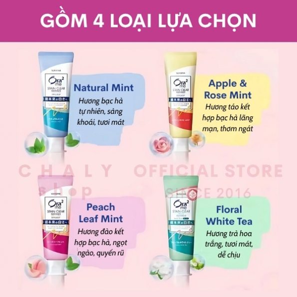 Chaly hiện có 4 loại hương hot nhất của dòng kem đánh trắng răng Ora2 me Stain Clear