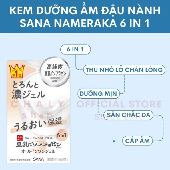 Hũ kem dưỡng ẩm Sana nameraka 6 in 1 soymilk isoflavone gel thay thế đồng thời cho tất cả các bước skincare cơ bản, giúp việc dưỡng da hàng ngày tiết kiệm thời gian tối đa nhưng vẫn đạt kết quả mong muốn