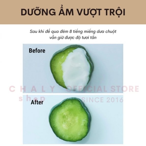 tuyệt nhiên không chứa bất kỳ thành phần nào có thể gây kích ứng. Texture lỏng mịn, thẩm thấu nhanh, khả năng khoá ẩm tốt nên đây là lựa chọn kem dưỡng da, cấp ẩm đơn giản, lành tính có thể làm hài lòng bất kỳ làn da đỏng đảnh khó chiều nào