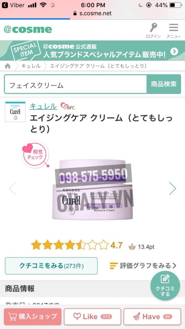 – Curel màu tím chống lão hoá của Kao Nhật được đánh giá tận 4.7 trên chuyên trang Cosme Ranking uy tín, với hàng trăm review khen ngợi từ người dùng