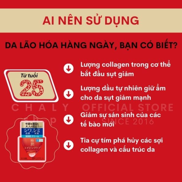 – Hũ kem Hada Labo màu đỏ được review phù hợp với chị em ở độ tuổi 30 tới trên dưới 40 tuổi sử dụng vừa vặn. Tuy nhiên, tuỳ theo mức độ lão hoá của da bạn mà bạn có thể bắt đầu sử dụng từ sớm hơn. Miễn sao khi apply trên da thì kem dưỡng cho hiệu quả tốt, da căng mướt hơn là được