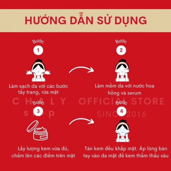 – Sử dụng sau khi làm sạch da và thoa nước hoa hồng, serum
