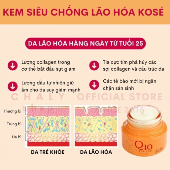 – Đặc biệt sử dụng kem dưỡng da chống lão hoá Q10 cream của Kose có tác dụng phục hồi làn da thương tổn, lão hoá nặng nề, bị môi trường hoặc thói quen skincare không chuẩn huỷ hoại trong thời gian dài