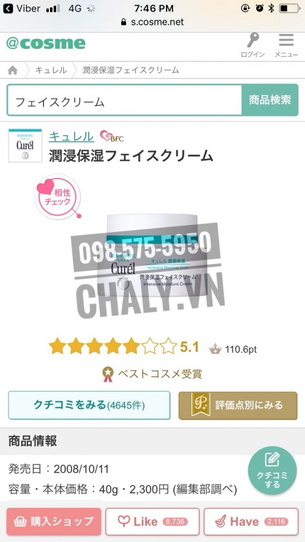 – Kem dưỡng da Curel của Nhật review trên Cosme với số điểm cực cao 5.1 và gần 5 nghìn review khen ngợi từ người dùng, xứng đáng là sản phẩm lọt top 3 kem dưỡng da tốt nhất Nhật Bản hiện tại bình chọn bởi chị em Nhật Bản
