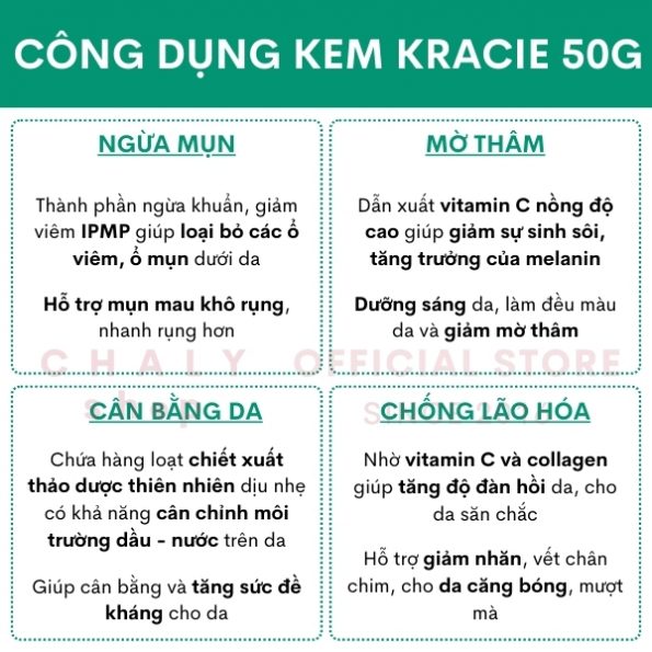 – Kem dưỡng da trị mụn Kracie Nhật có khả năng tấn công trực diện, tiêu diệt vi khuẩn gây mụn ẩn trú sâu bên trong các ổ viêm, ổ mụn nang chân lông dưới da