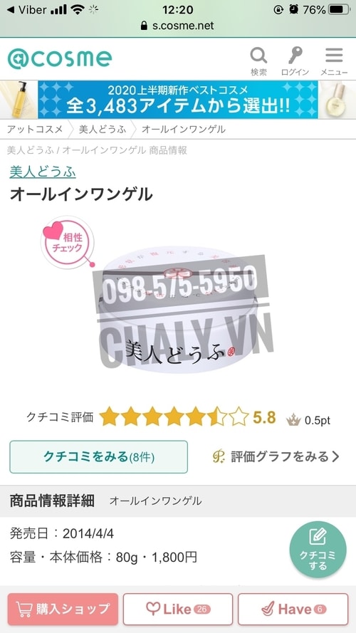 – Kem dưỡng da đậu nành sữa chua Bijin Dofu Nhật đạt số điểm review cao chót vót 5.8 trên Cosme Nhật Bản