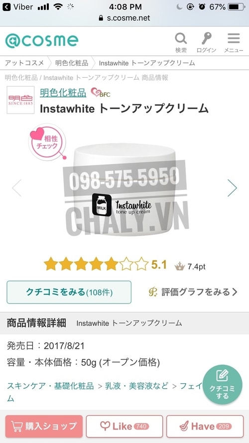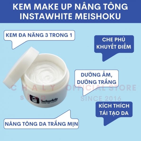 – Kem dưỡng trắng da instawhite tone up của Meishoku được Chaly nhập tại Nhật, đảm bảo chính hãng