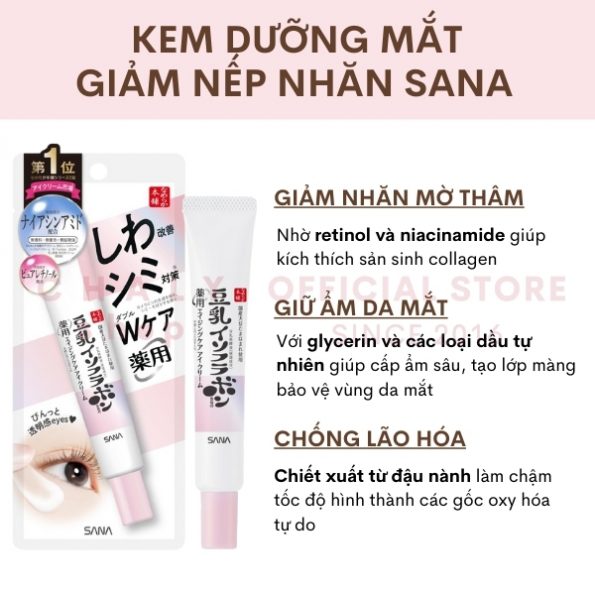 - 3 Ưu điểm của kem dưỡng mắt Sana Nameraka Wrinkle Soymilk Nhật