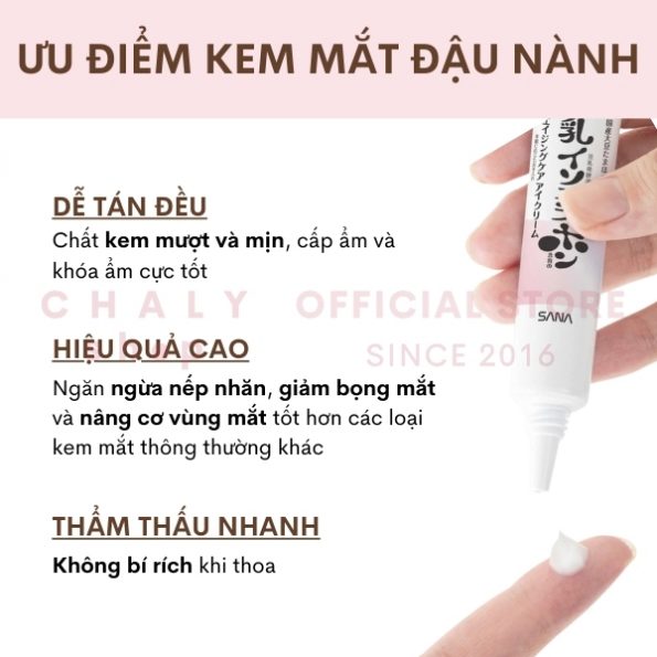 Shop Nhật Chaly cam kết cung cấp sản phẩm kem dưỡng mắt Sana Nameraka Wrinkle Soymilk Eye Cream và nhiều sản phẩm chăm sóc mắt nội địa Nhật chính hãng 100%. Quý khách có thể đặt mua bằng các cách sau