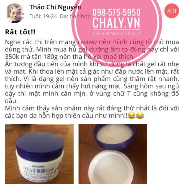 3 đánh giá cho Kem dưỡng Naturie Skin Conditioning Gel Nhật Bản 180g