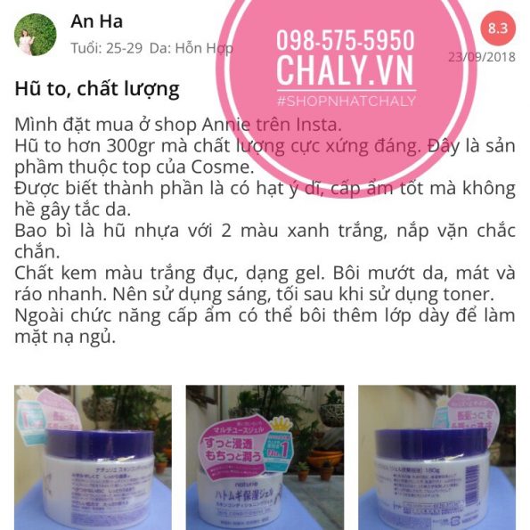 Kem dưỡng ẩm hạt ý dĩ review – Gel Naturie Nhật