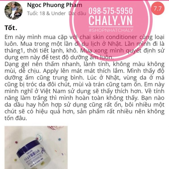 - 6 Review kem dưỡng ý dĩ Nhật Naturie Hatomugi Skin Conditioning Gel