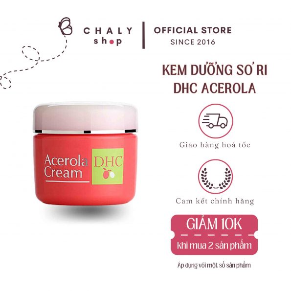 Chứa dồi dào thành phần vitamin C từ trái sơ ri (gấp 34 lần trái chanh), DHC acerola cream nổi tiếng về hiệu quả dưỡng trắng, mờ thâm, ngừa nám, se khít lỗ chân lông