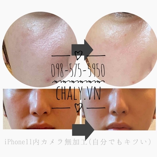 Ảnh review thực tế sau 1 tháng sử dụng của bạn gái Nhật. Tình trạng da mẩn viêm, không đều màu được cải thiện tới 90%. Da có độ bóng và căng mướt