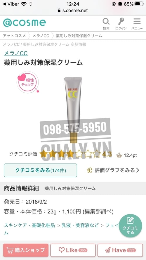 – Kem CC Melano làm sáng da Nhật đạt số điểm review 4.5 trên Cosme Japan