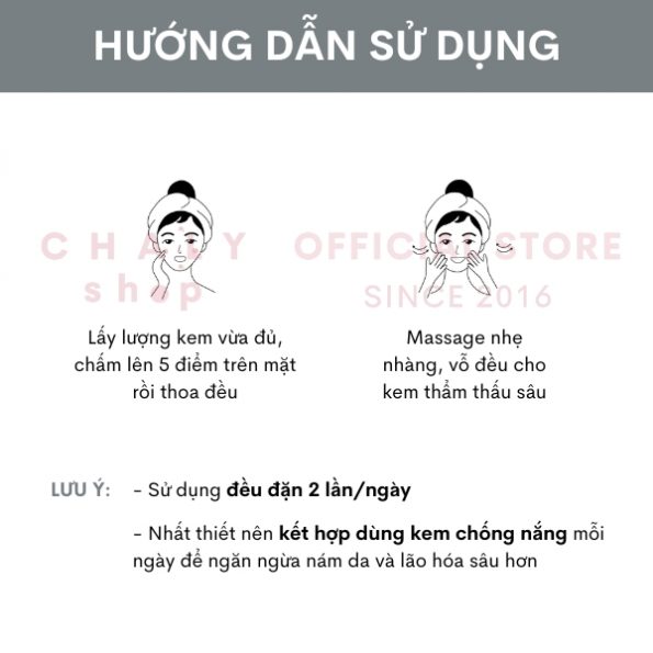– Mục đích sử dụng: Dưỡng trắng. Làm mờ thâm sạm, ngừa nám cho da nhạy cảm